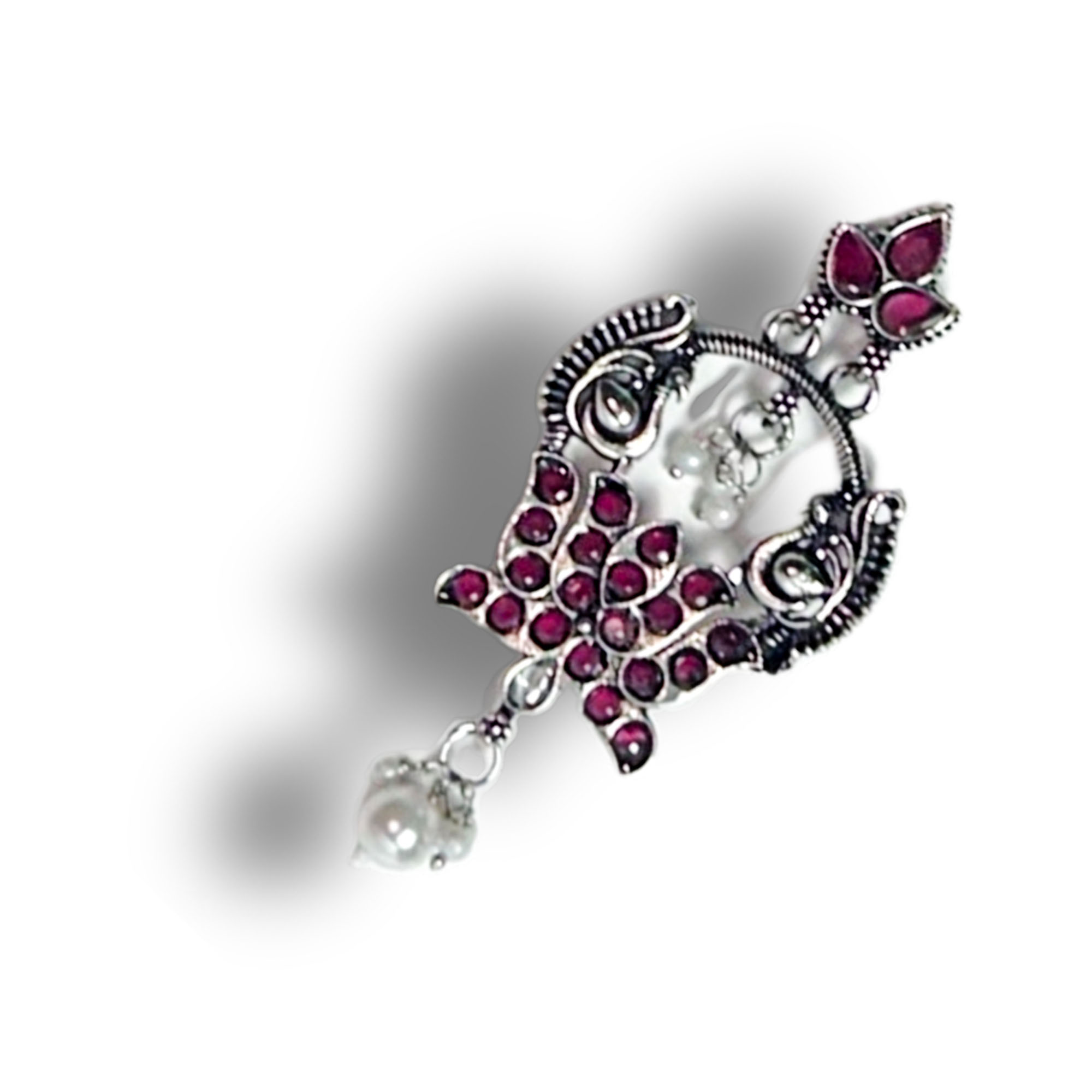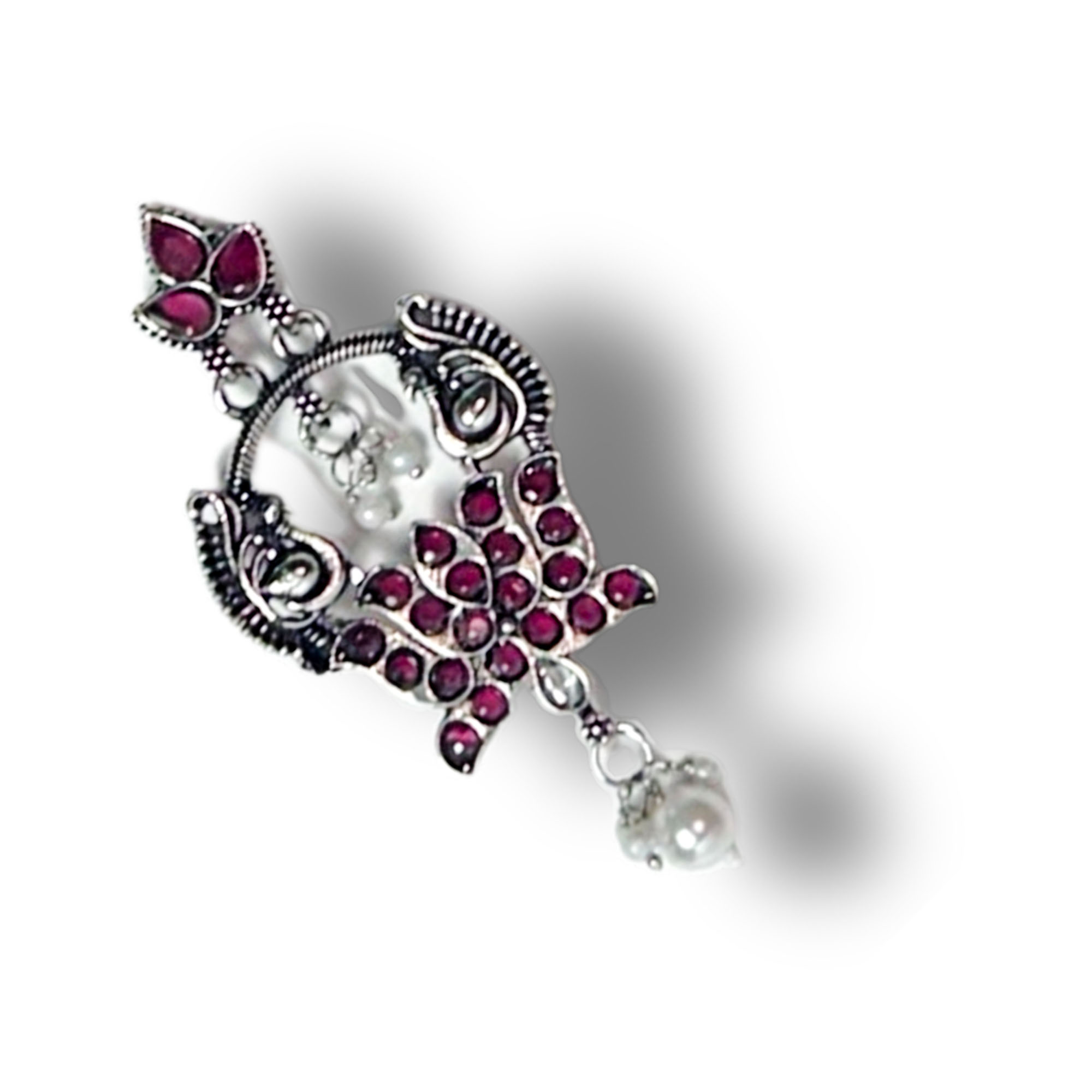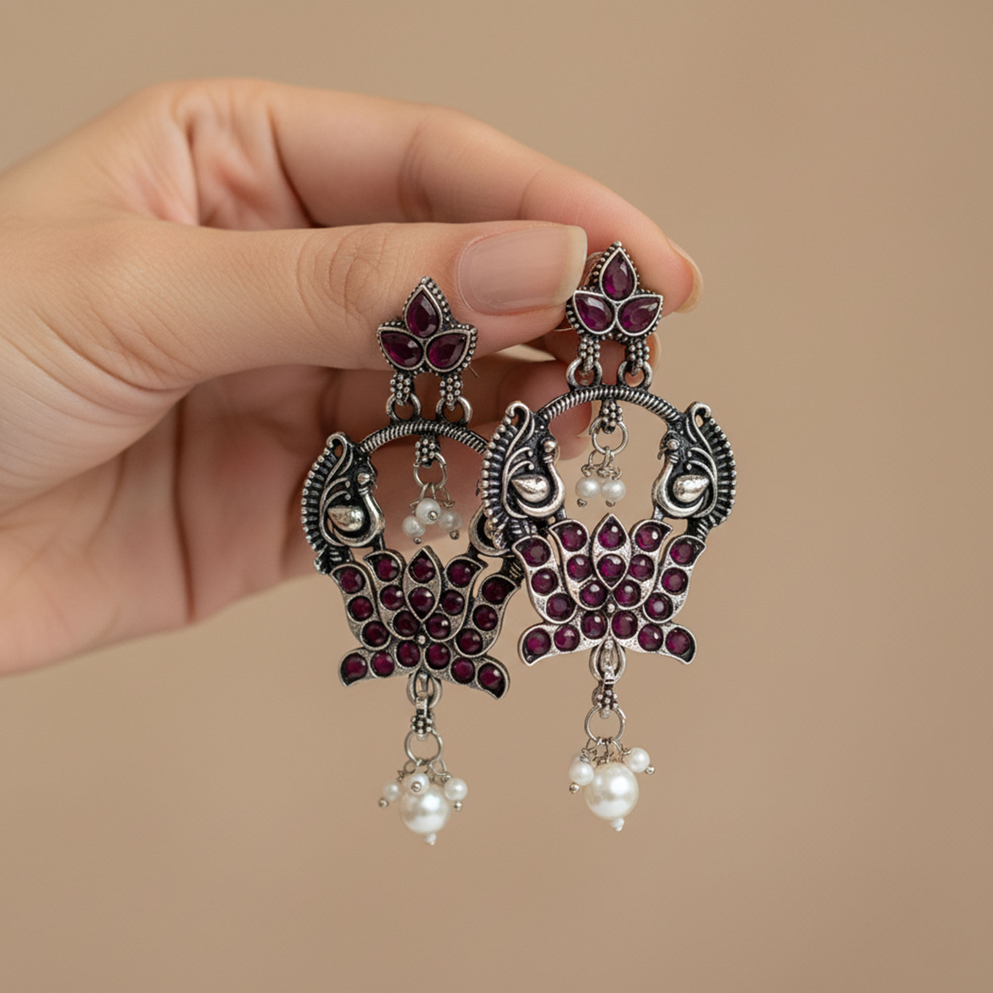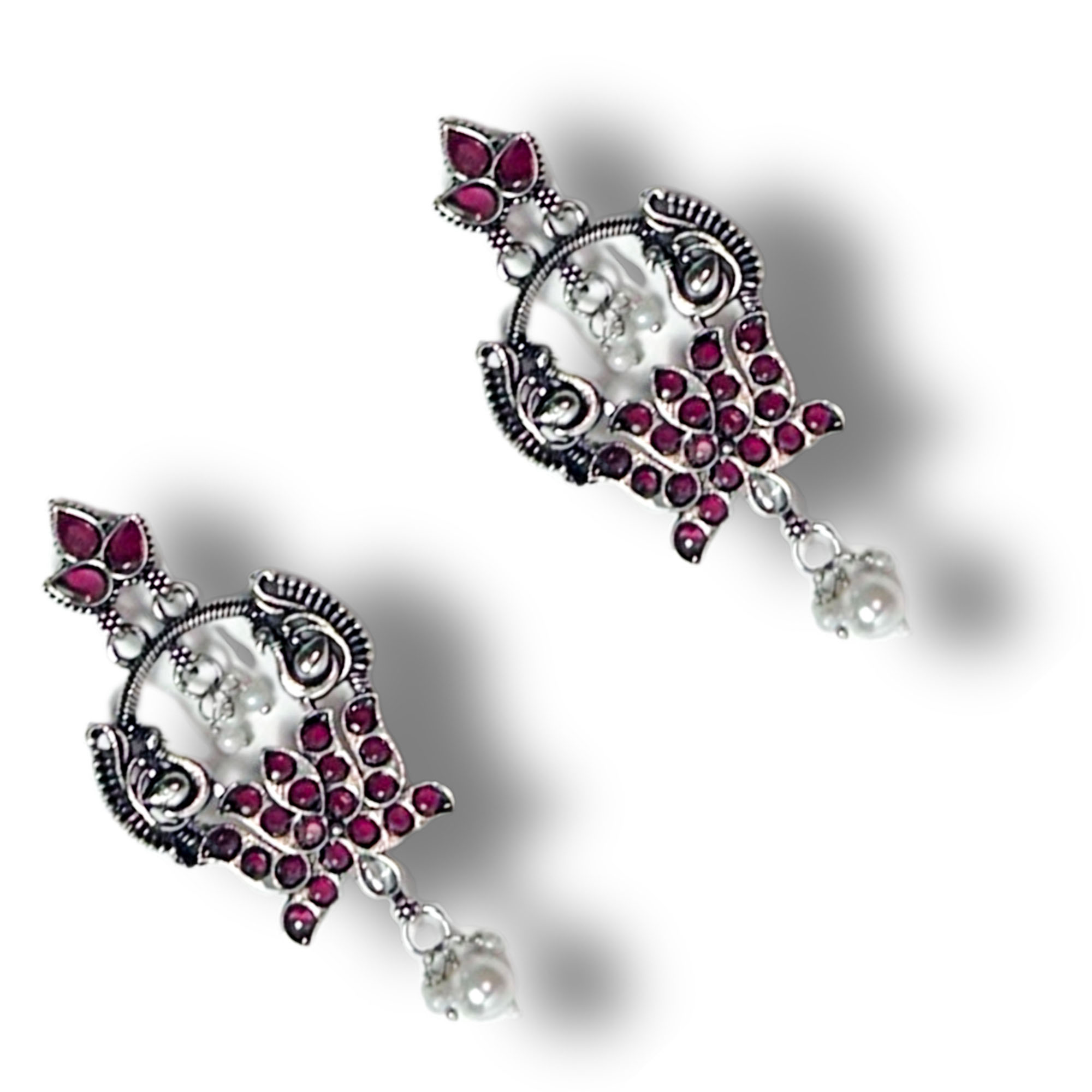ElegantBelanza Pink Green Earrings featuring a premium oxidized silver finish and delicate pearl drops. Lightweight, anti-tarnish, and perfect for festive or everyday ethnic looks.
